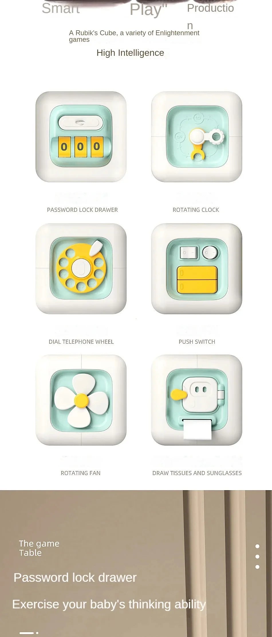 Baby Practice Skills Drawer Cube 6 in 1 Montessori Educational Toys Sensory Busy Board Fidget Educational Toys for Girl Boy