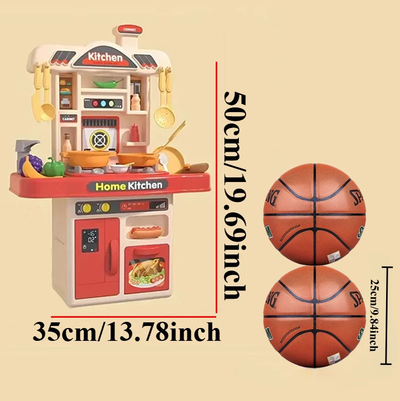 [Educational]: The children's toy kitchen is equipped with many realistic cooking utensils, allowing your children to learn to recognize the colors of vegetables and fruits while playing, and improve their craftsmanship, imagination, language and social skills.