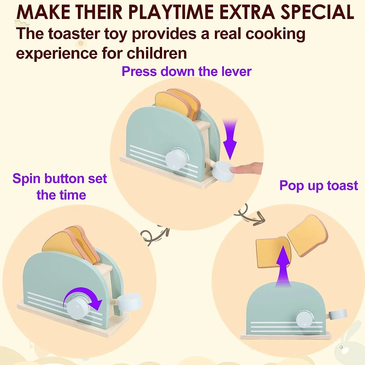 High-Quality Wood Construction – Our smooth, kid-safe toy kitchen accessories are easy to handle, feature rounded edges and non-toxic colors and prints, and hold up to tough and tumble play by young toddlers of all ages.